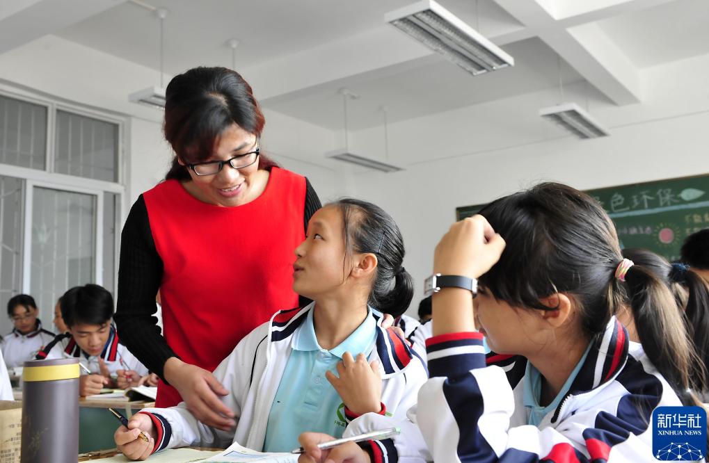 普格县民族中学彝族老师沙诺在给学生上英语课(2016年10月21日摄)。沙诺1992年就读于东山乡中心学校女子班。
