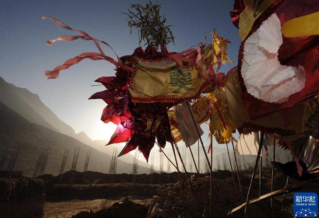 2008年12月8日,在萝卜寨震后新坟旁,新的萝卜寨正在加紧修建中。
