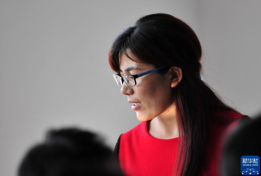 普格县民族中学彝族老师沙诺正在上课(2016年10月21日摄)。沙诺1992年就读于东山乡中心学校女子班。