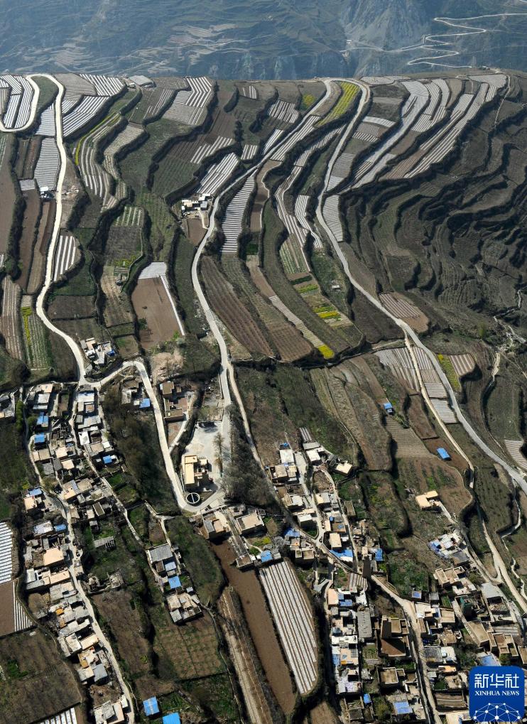 2011年4月24日,汶川境内新家园和农田的航拍照片。