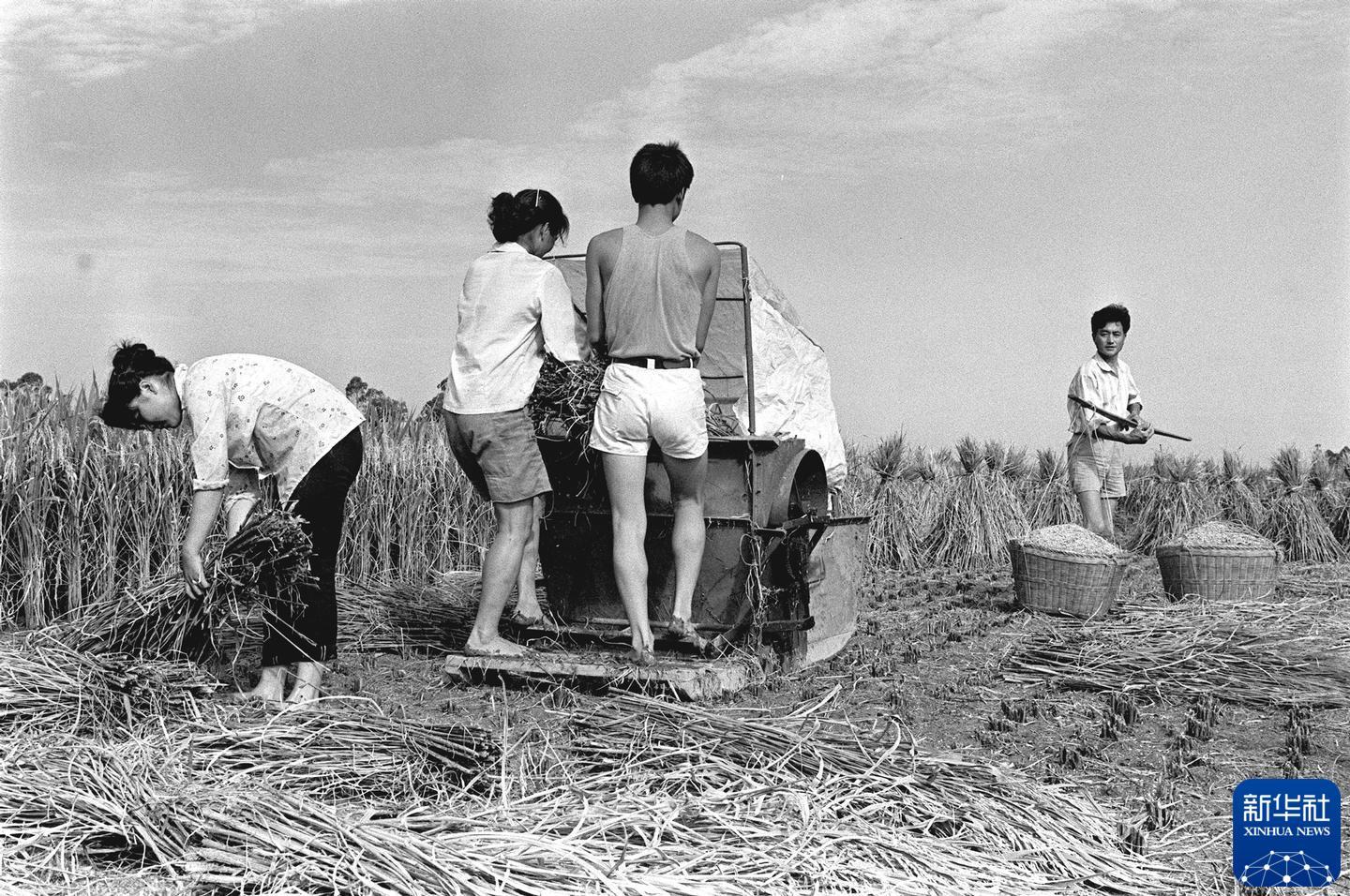 1991年8月底,川西平原农民在收割水稻。