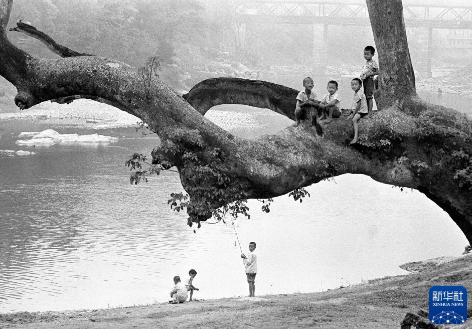 川、湘、黔三省交界处武陵山区秀山县(今重庆市)西水河边玩耍的孩童。(1989年10月11日发)
