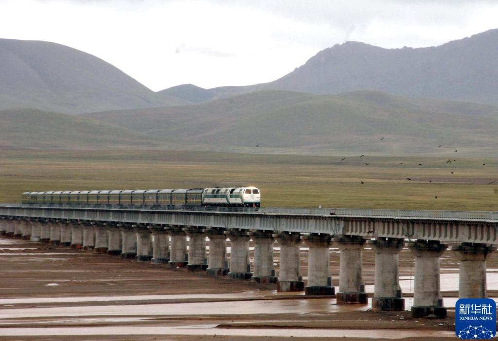 2006年7月1日,青藏铁路全线通车。这是从拉萨出发的“藏2”次列车驶过沱沱河大桥。