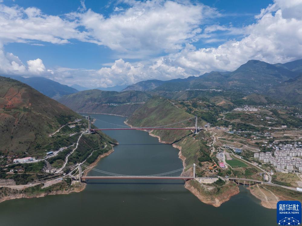宜攀高速川滇金沙江特大桥(上)在建设中(2024年9月11日摄,无人机照片)。2024年9月12日,天府新区至邛崃高速公路(全线)、南充至成都高速公路扩容项目(部分路段)、成都至乐山高速公路扩容项目(部分路段)等5条高速公路正式通车,将于9月13日起陆续向社会开放交通。这标志着四川高速公路总里程突破10000公里,达到10051公里。从“蜀道难”到“蜀道通”,再到“蜀道畅”——四川省内21个市(州)高速公路全面覆盖,82%的县城实现“15分钟上高速公路”。新华社记者江宏景摄