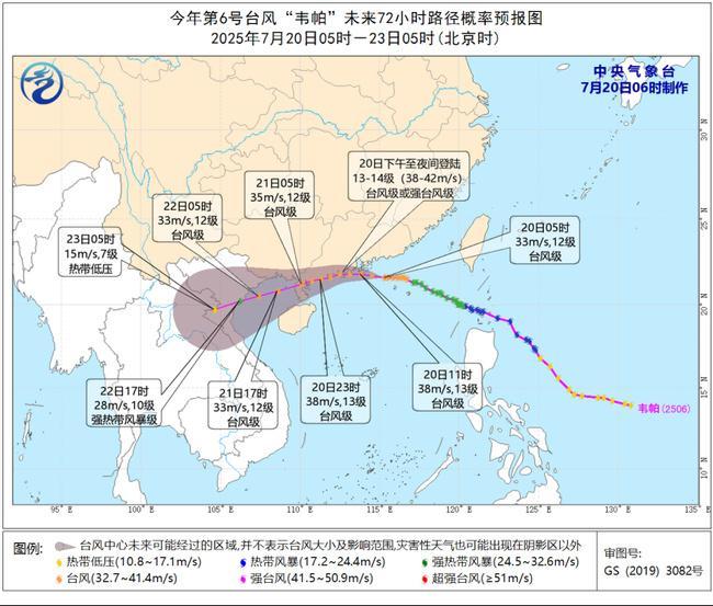 中央气象台7月20日06时继续发布台风橙色预警: