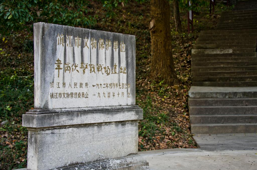 江苏镇江,高骊山麓,拾级而上,韦岗战斗胜利纪念碑立于苍翠之间。碑顶古铜色的步枪雕塑直指苍穹,碑身后方,巨大的长方形石碑上记载了新四军挺进江南敌后、抗击日本侵略者的第一仗。