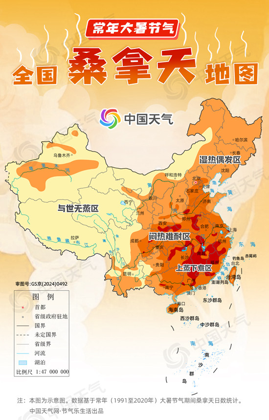 上蒸下煮!常年大暑时节桑拿天分布揭秘