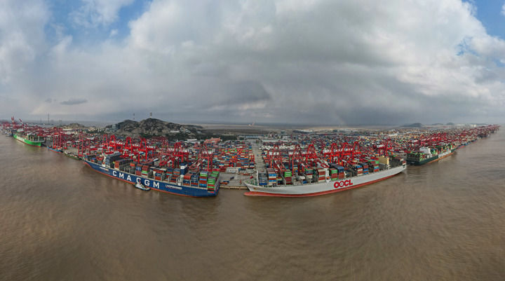 2024年12月18日拍摄的洋山港集装箱码头(无人机全景照片)。新华社记者 方喆 摄