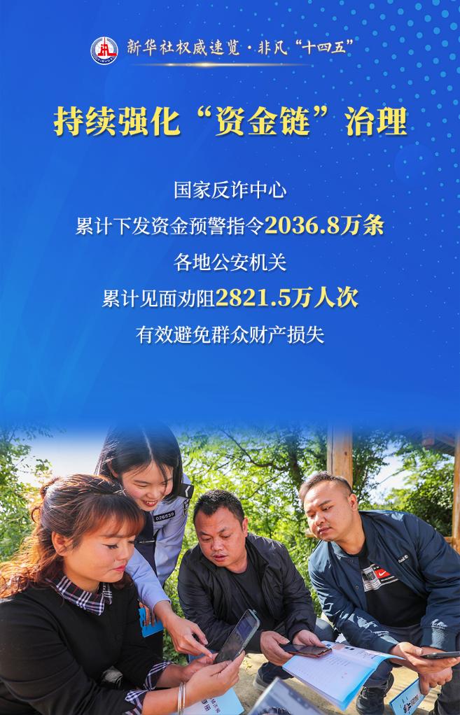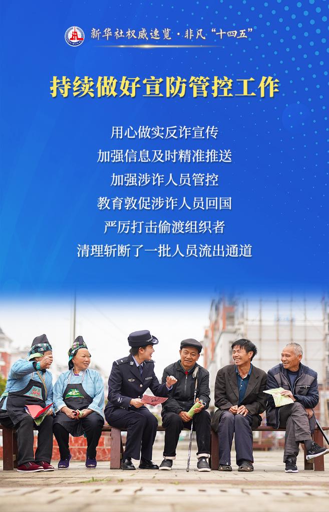 破获电信网络诈骗案件173.9万起、拦截诈骗电话124.1亿次、捣毁境外诈骗窝点2000余个……23日举行的“高质量完成‘十四五’规划”发布会上,公安部用五句话总结了“十四五”期间严打电信网络诈骗犯罪取得的成果。跟随海报,一起看看如何维护人民群众的合法权益。