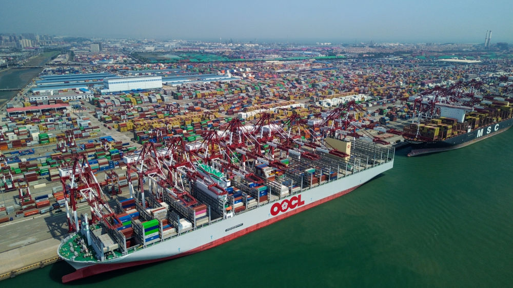 这是青岛港集装箱码头(2025年5月29日摄,无人机照片)。新华社记者 徐速绘 摄