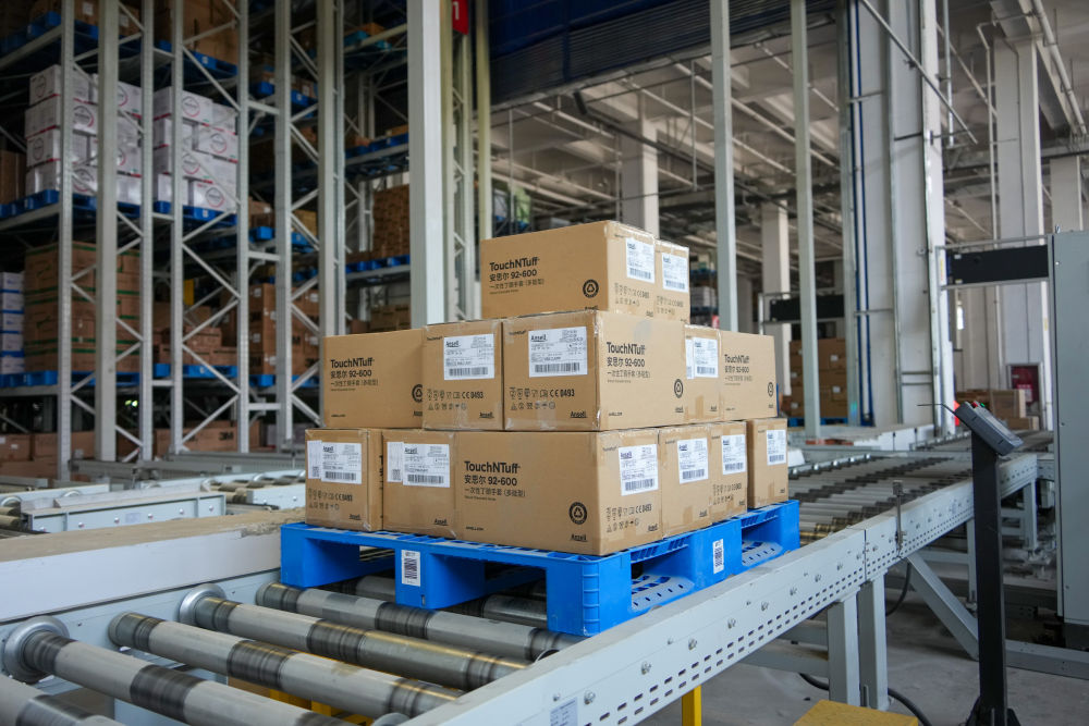 在山东临沂的新明辉智慧仓储物流园,货物在传输带上运输(2025年6月11日摄)。新华社记者 徐速绘 摄
