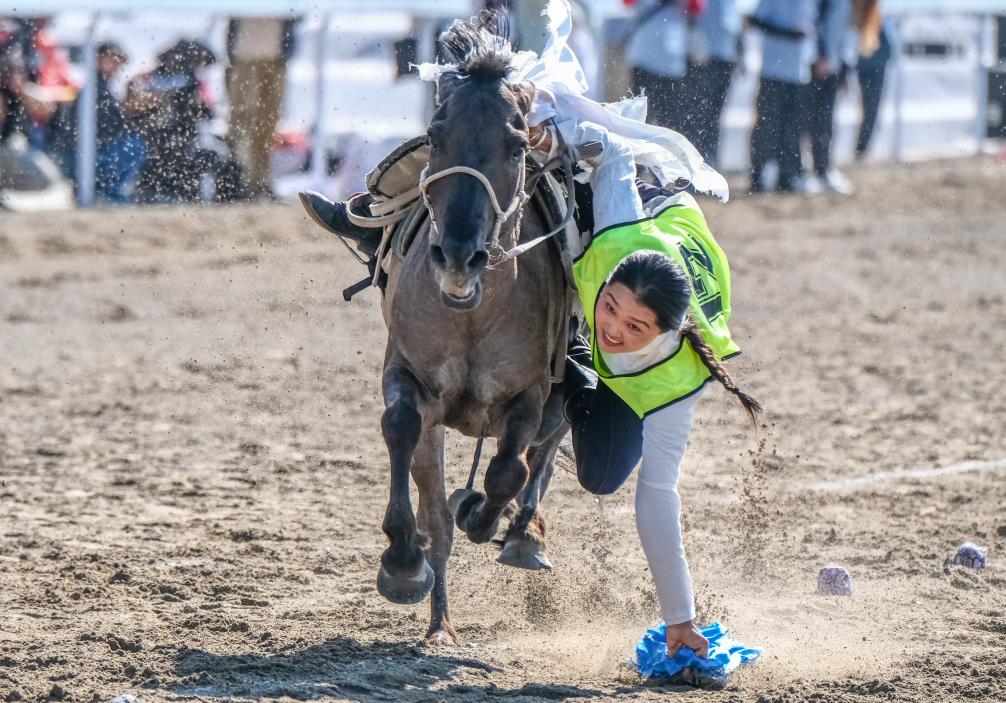 段堪称完美的跑马拾哈达。