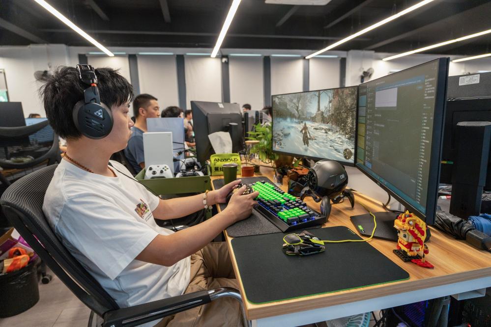 7月16日,研发人员在测试游戏《明末:渊虚之羽》性能,为发布做准备。新华社记者 薛晨 摄