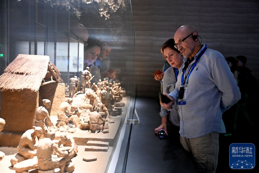 ↑ 7月23日,上海合作组织媒体智库峰会与会代表在三门峡市渑池县仰韶文化博物馆参观。新华社记者 郝源 摄
