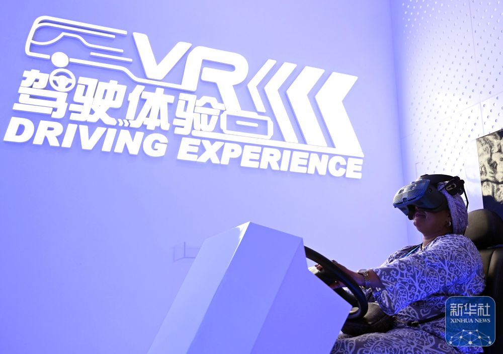 ↑ 7月24日,上海合作组织媒体智库峰会与会代表在郑州市宇通品牌体验中心体验VR驾驶。新华社记者 李嘉南 摄