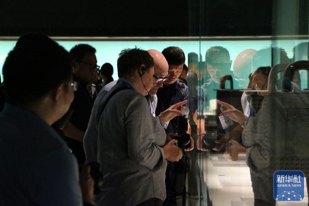 ↑ 7月23日,上海合作组织媒体智库峰会与会代表在郑州商都遗址博物院参观。新华社记者 朱祥 摄