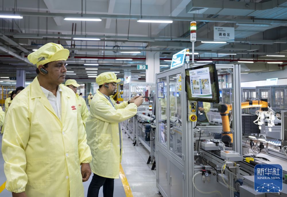↑ 7月23日,上海合作组织媒体智库峰会与会代表在位于许昌市的河南许继仪表有限公司车间内参观。新华社记者 傅天 摄
