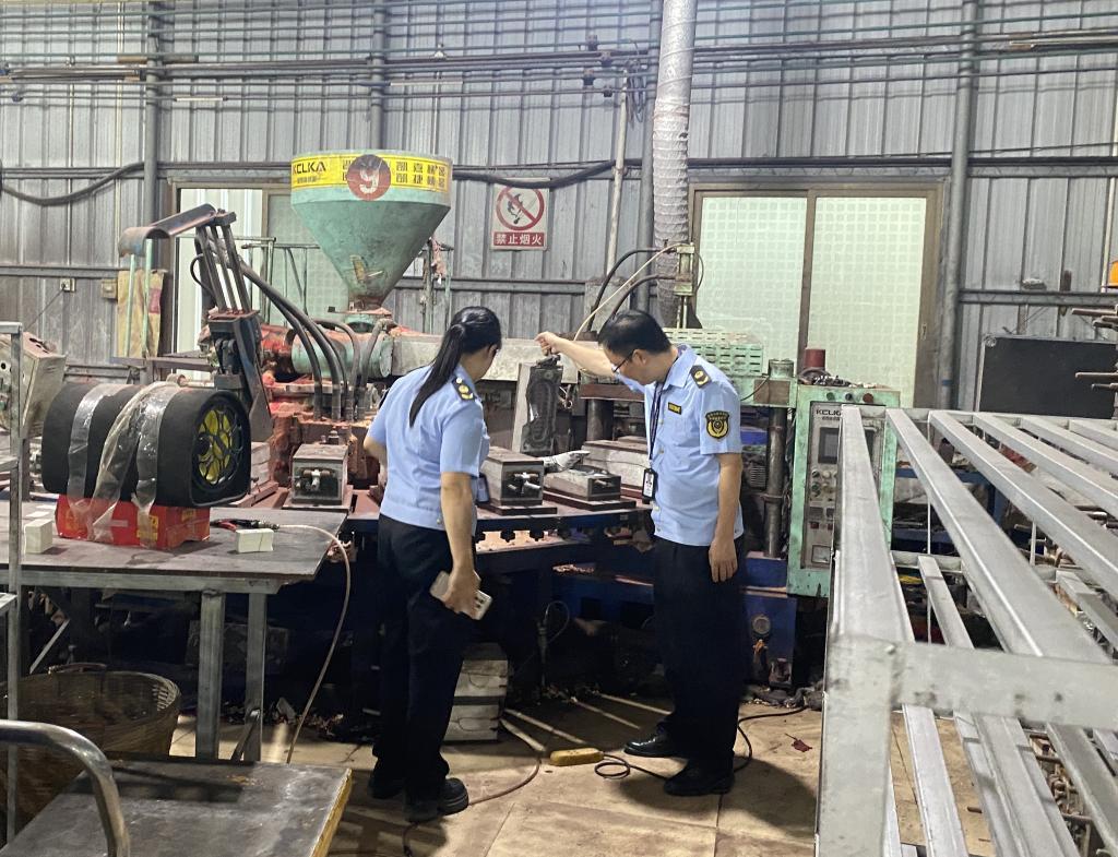 6月10日,吴川市场监管部门组织执法人员前往塑料鞋厂开展检查。(受访者供图)