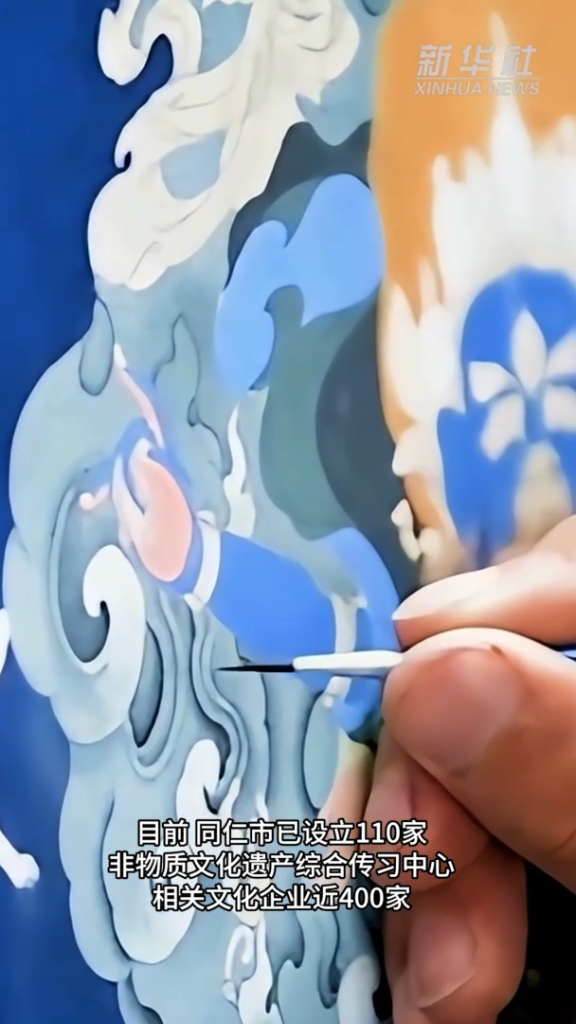 目前,同仁市已设立110家非物质文化遗产综合传习中心,相关文化企业近400家。同仁市十多万多人口中,超过两万人从事热贡艺术行业,非遗保护传承焕发新活力。