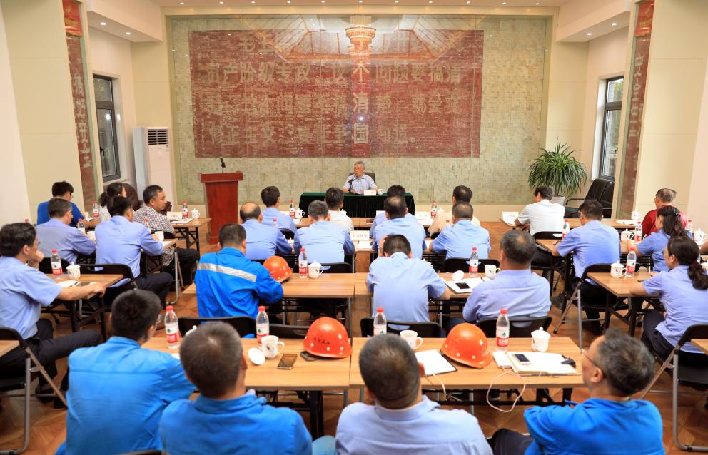 2019年7月25日,王生在南钢“传承红色基因、牢记初心使命”专题党课上讲述革命经历。新华社发(吴斌 摄)