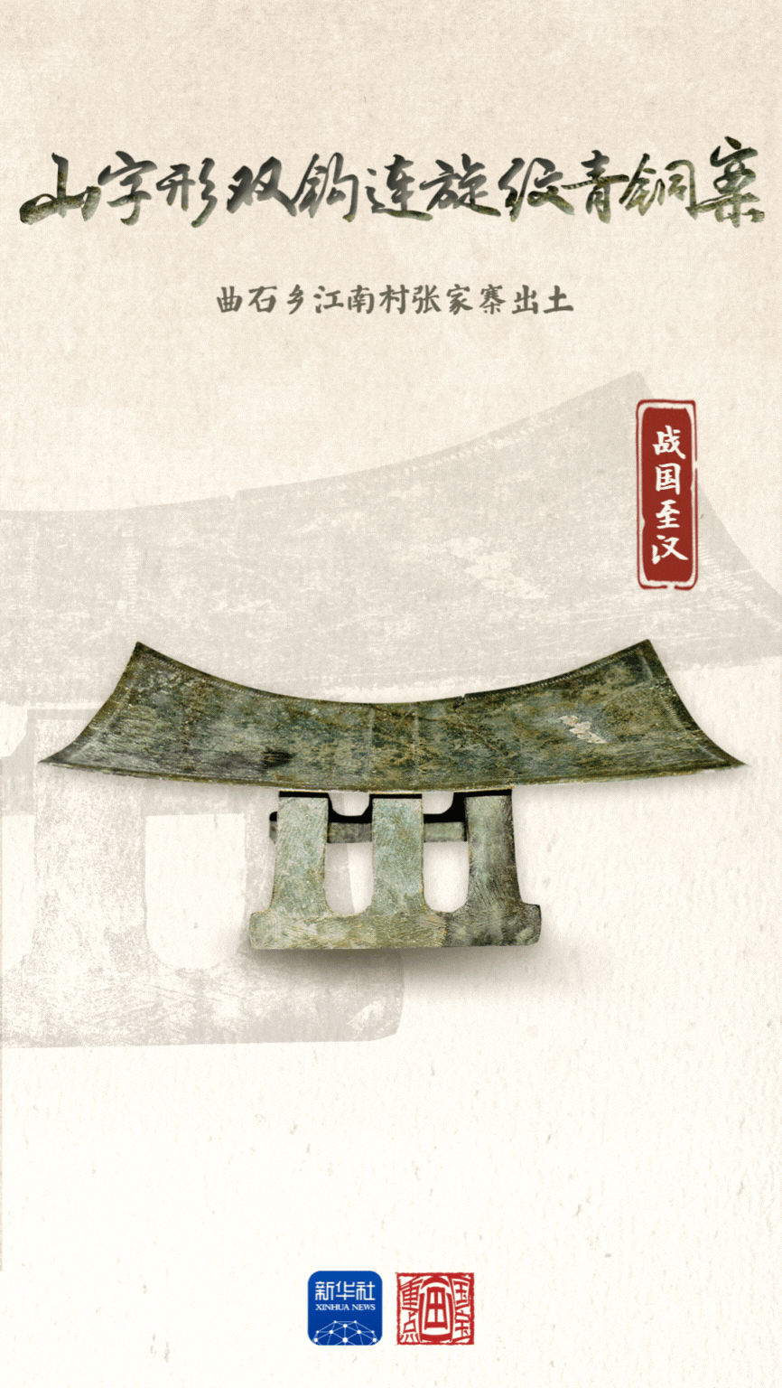 山字形双钩连旋纹青铜案