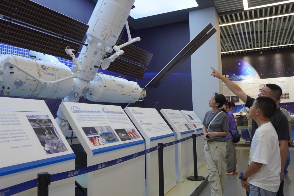 参观者在哈尔滨工业大学航天馆内观摩航天模型。(哈尔滨工业大学供图)