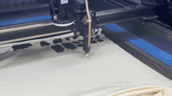 8月11日,在广东东莞奇骏玩具工厂,机器根据图纸裁切布料。新华社发(郑家雄摄)