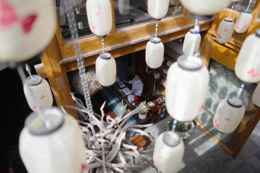 2024年8月5日,工作人员在神农架林区木鱼镇一家民宿前台忙碌。记者 伍志尊 摄