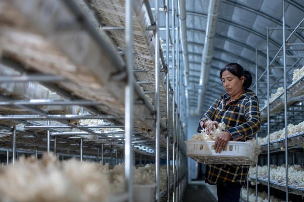 宋洛乡盘龙村村民屈定荣说,以前每年都要外出打工,回趟家很不容易。2022年天蕈现代农业有限公司种植基地建成后,她选择留下当一名菌种菌棒厂工人,既有了稳定收入,每天还能和家人团聚。