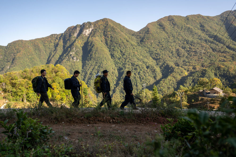 几名护林员在茅胡岭巡护途中。记者 杜子璇 摄