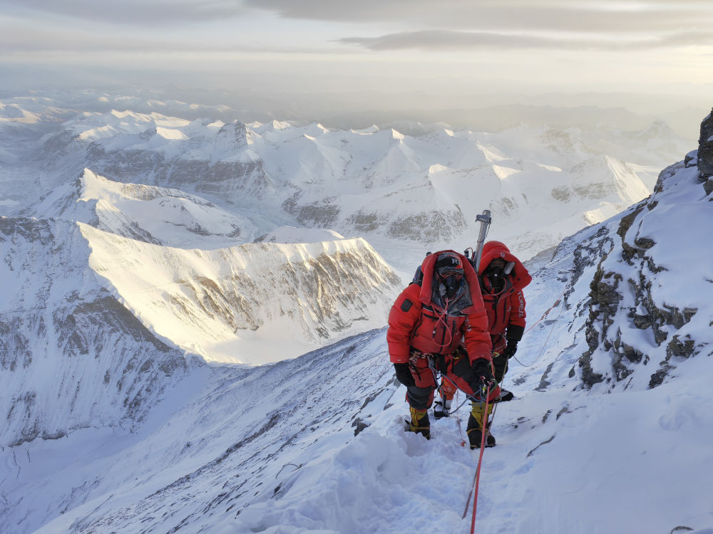 2023年5月23日,2023年珠峰科考登顶队员在冲顶。当日12时30分许,2023年珠峰科考13名登顶队员成功登顶珠穆朗玛峰,此后完成了峰顶雪冰样品采集等重要科考任务。近年来,西藏持续以生态科研为生态保护提供坚实支撑,为应对全球气候变化挑战提供中国方案。2022年和2023年两次“巅峰使命”珠峰科考,创造多项世界纪录;2023年10月1日,18名科考队员成功登顶世界第六高峰卓奥友峰,标志着我国具有开展极高海拔登顶科考的体系化能力和建制化队伍,实现战略上的拓展。