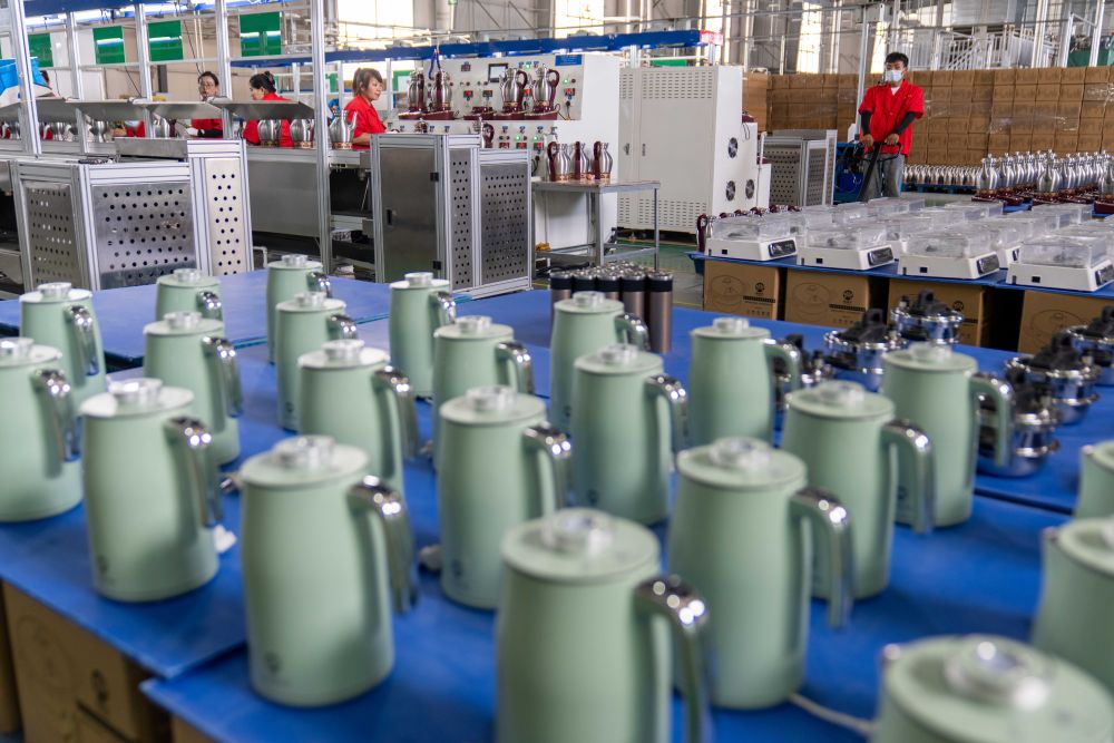 2025年7月17日在拉萨拍摄的西藏某炊具公司生产的高原炊具。一系列适配高原的炊具,目前已推出数十种产品,包括能精准控压的多功能压力锅、专为高原设计的蒸箱和烧水壶、适应户外劳作需求的便携式炊具、贴合本地群众生活习惯的酥油茶壶等,改善高原群众的烹饪体验。