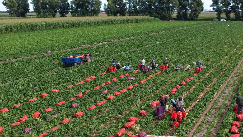 黑龙江省齐齐哈尔市梅里斯达斡尔族区雅尔塞镇红星村洋葱种植基地洋葱丰收。 新华社发(鄂洪波摄)