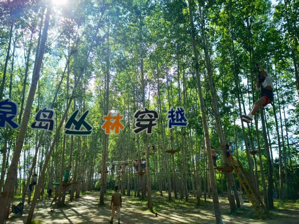 游客在小朱家村的龙泉岛度假村体验丛林穿越。(受访者提供)