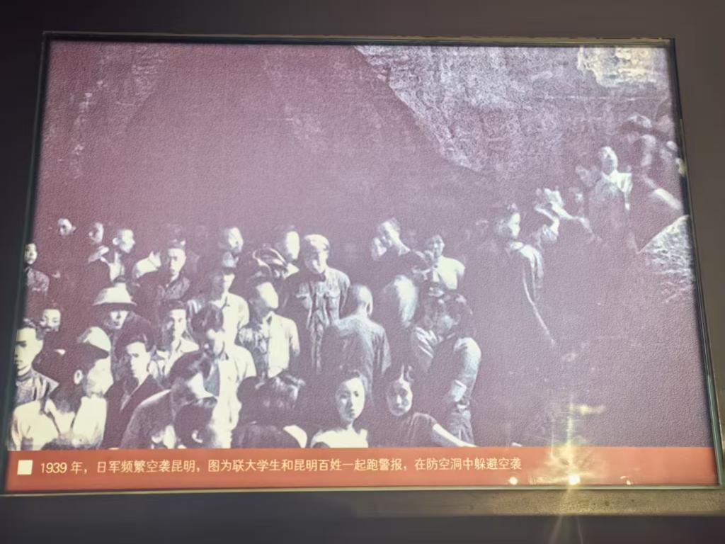 西南联大博物馆内陈列的“跑警报”照片。新华社记者 荆昭延 摄