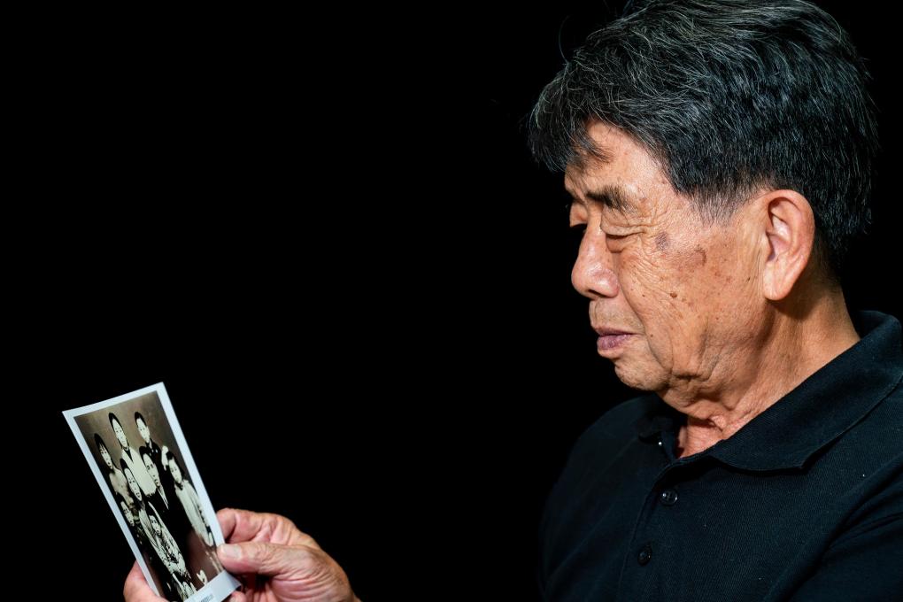 2025年7月17日,张云鹏端详儿时与父母、兄弟姐妹拍摄的全家福。