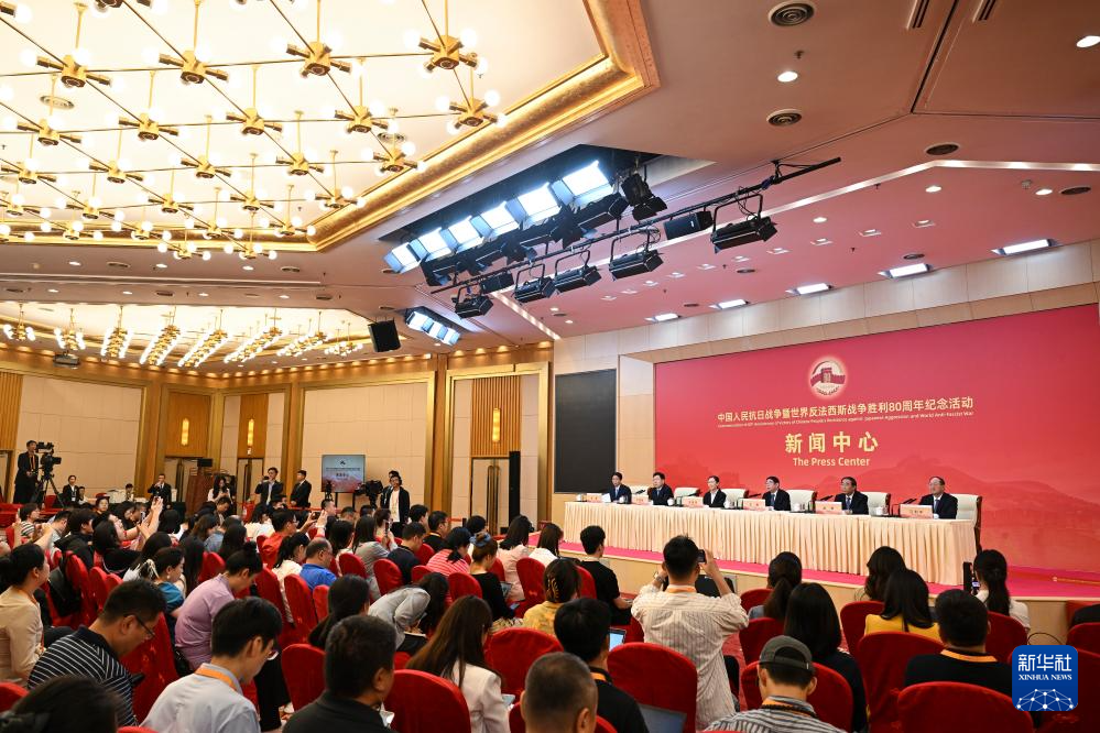 8月29日下午,中国人民抗日战争暨世界反法西斯战争胜利80周年纪念活动新闻中心在北京举办第一场记者见面会,中国国民党革命委员会中央委员会副主席陈星莺、中国农工民主党中央委员会副主席王路、中国致公党中央委员会副主席卢国懿、九三学社中央委员会副主席丛斌、台湾民主自治同盟中央委员会副主席江利平介绍对抗日战争的认识等方面情况,并回答记者提问。新华社记者 金良快 摄