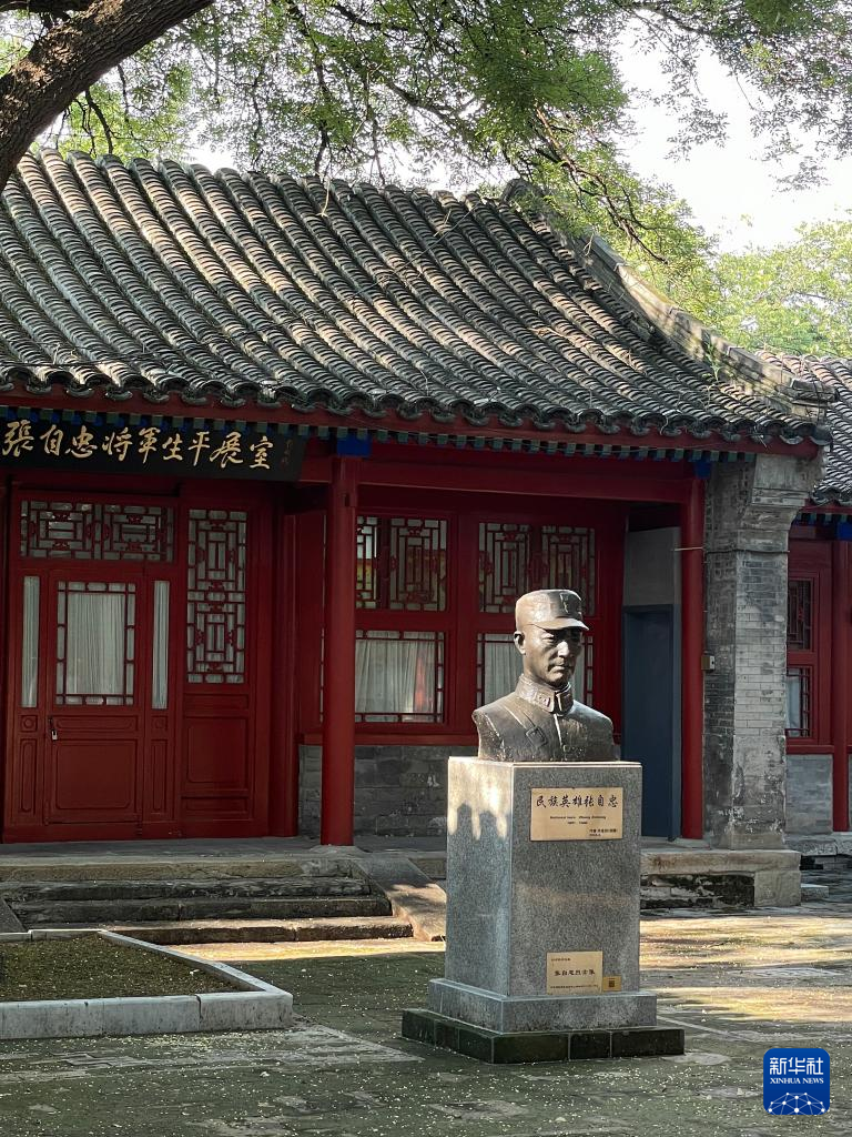 这是位于北京市自忠小学内的张自忠雕像(8月6日摄,手机照片)新华社记者 陈钟昊 摄