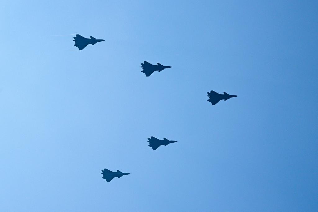 9月3日,纪念中国人民抗日战争暨世界反法西斯战争胜利80周年大会在北京隆重举行。这是歼击机梯队接受检阅。新华社记者 魏培全 摄
