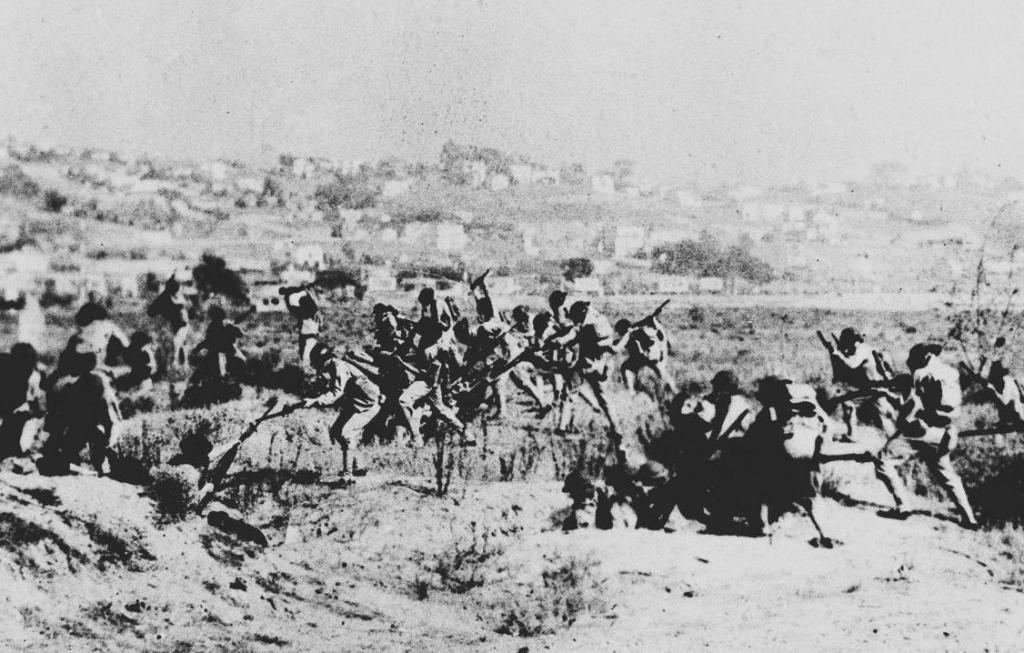 1937年8月13日,淞沪会战爆发。这是中国军队在闸北八字桥攻击日军。新华社发