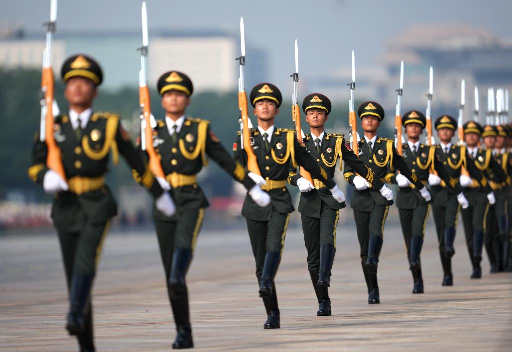 9月3日,纪念中国人民抗日战争暨世界反法西斯战争胜利80周年大会在北京隆重举行。这是标兵就位。新华社记者 刘潺 摄
