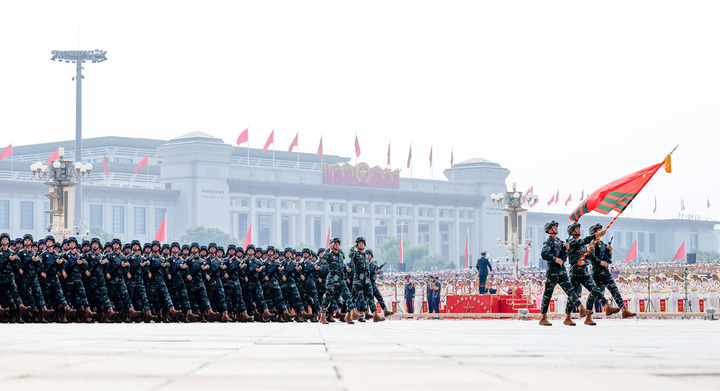 9月3日,纪念中国人民抗日战争暨世界反法西斯战争胜利80周年大会在北京隆重举行。这是武警部队方队接受检阅。新华社记者 张铖 摄