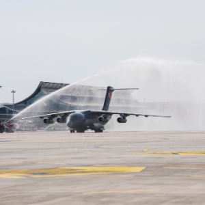 停机坪上架起“水门”