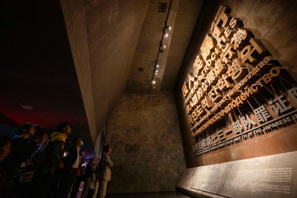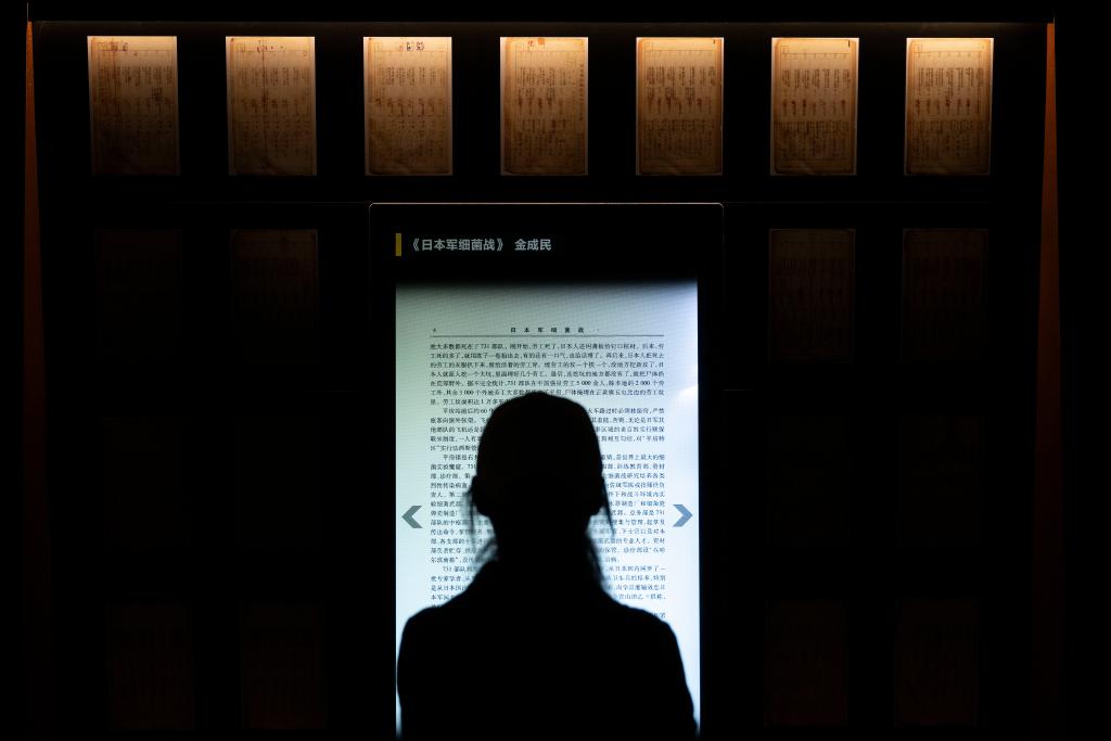 9月16日,参观者在侵华日军第七三一部队罪证陈列馆内参观。新华社记者 张涛 摄