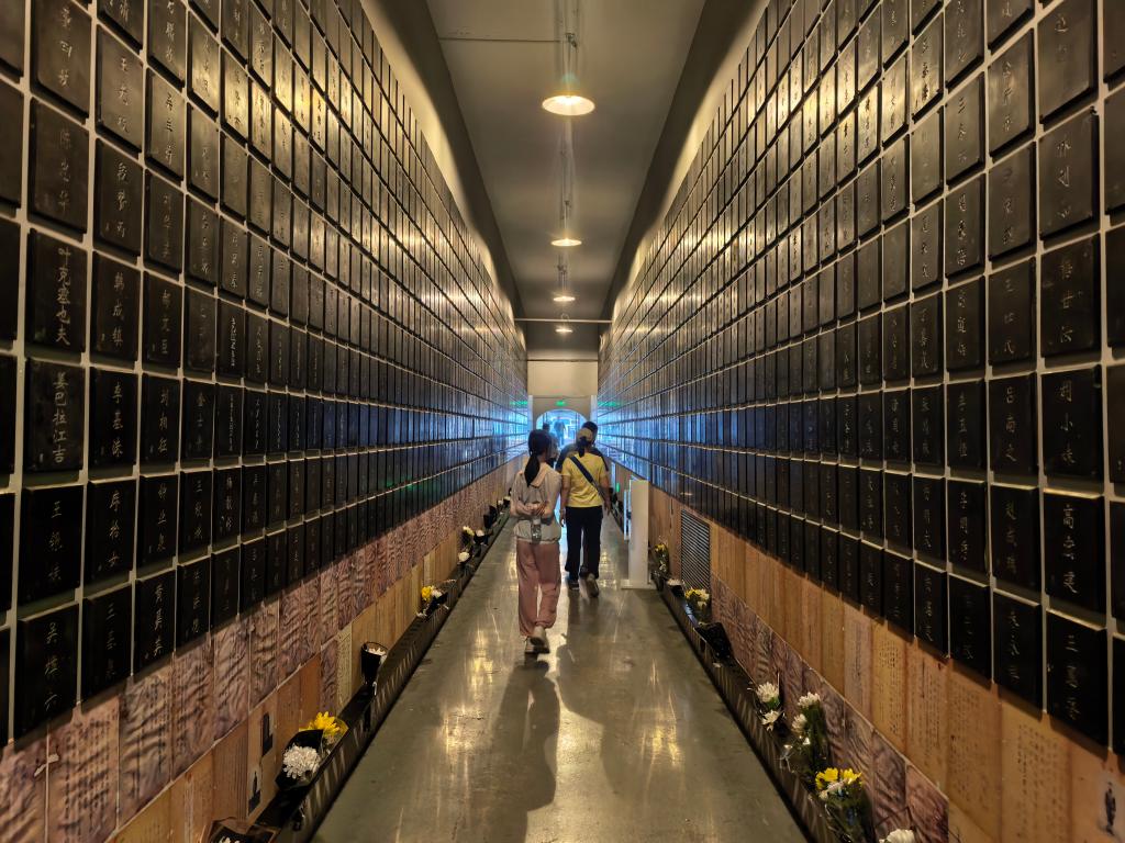 参观者在“殉难者名单墙”参观。新华社记者 杨思琪 摄