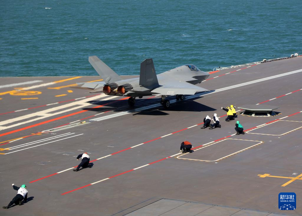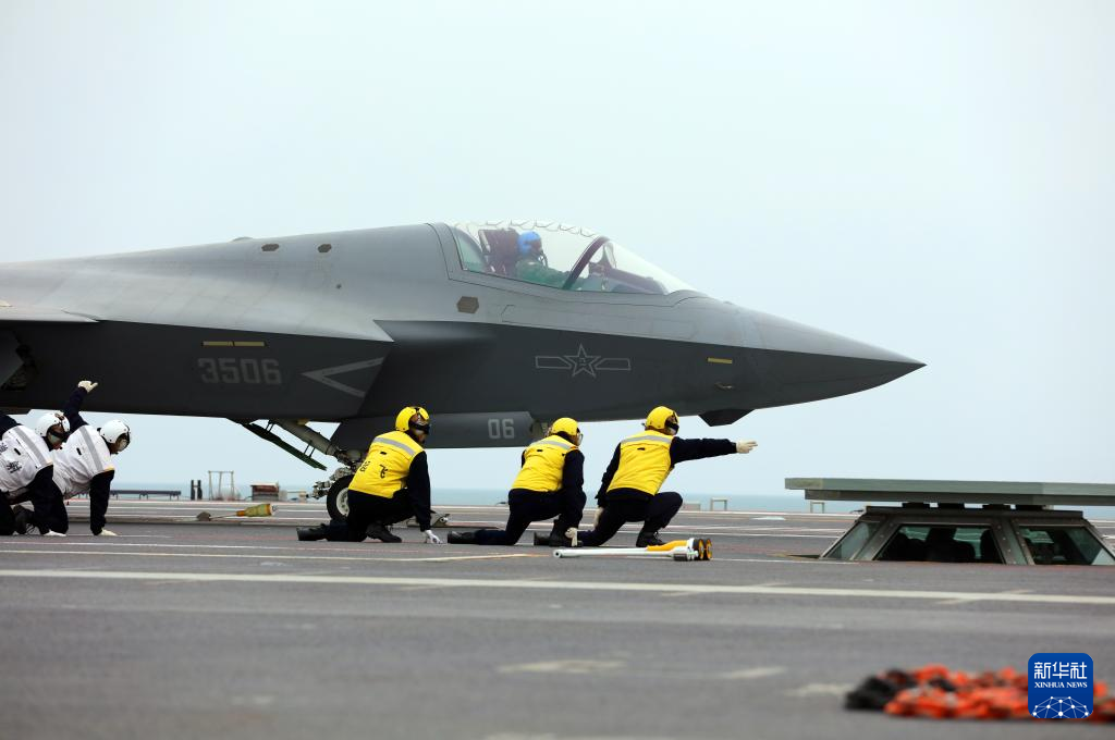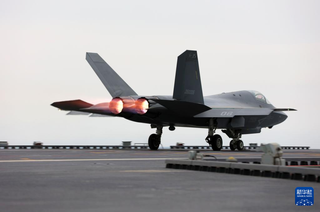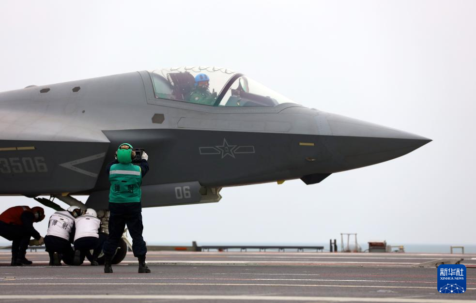 歼-35舰载战斗机在福建舰上开展触舰复飞训练(资料照片)。新华社发(李唐 摄)