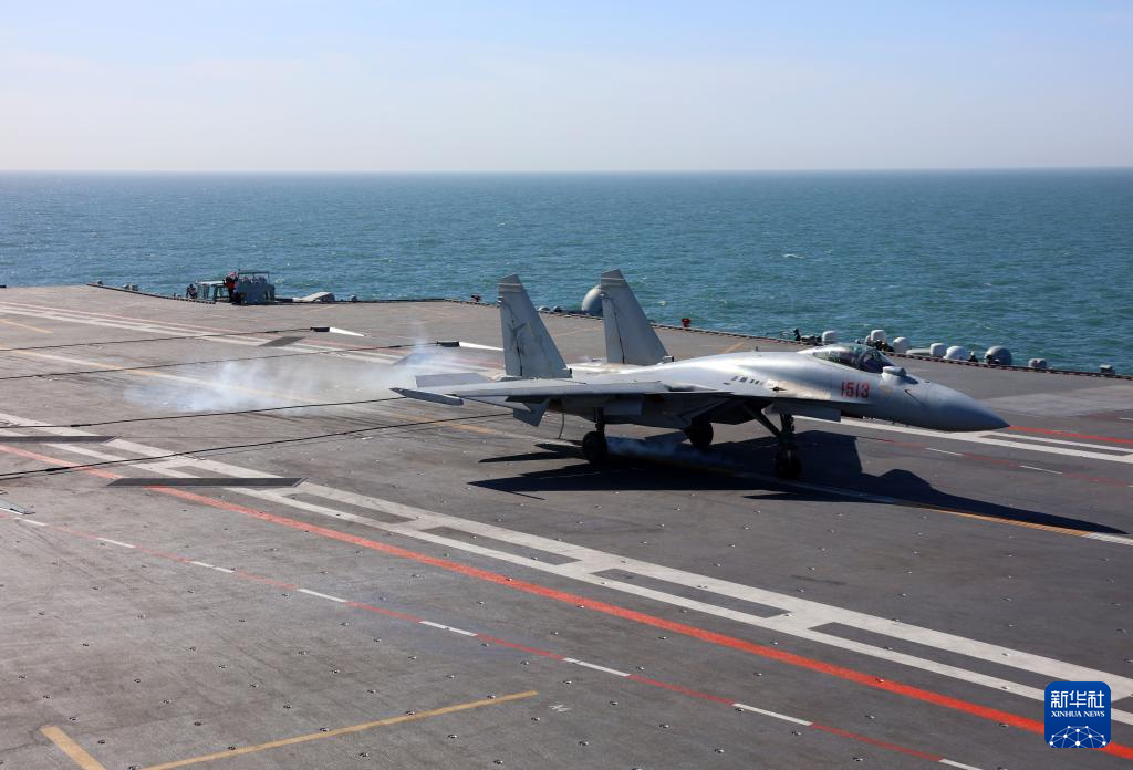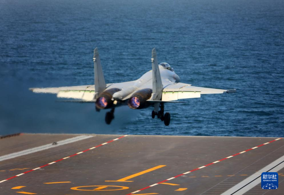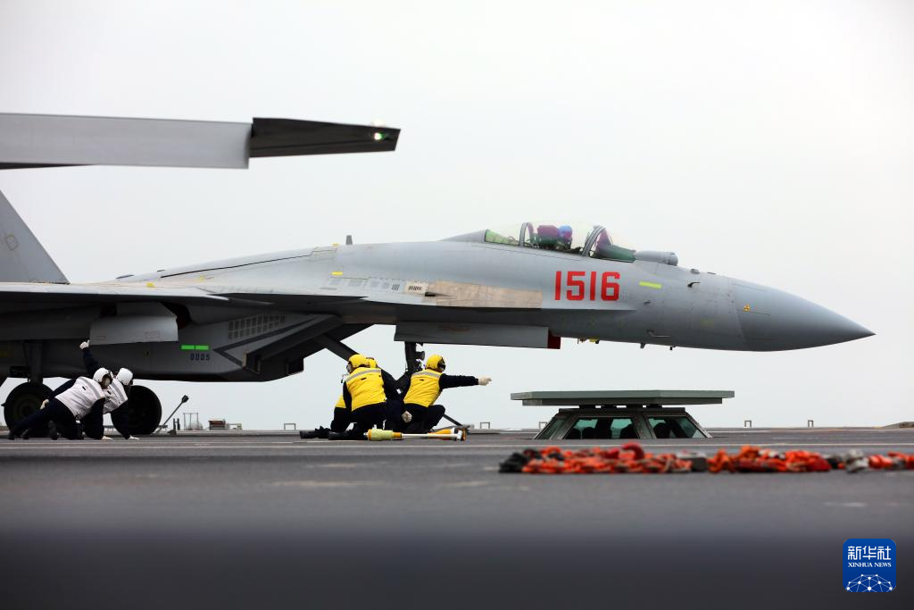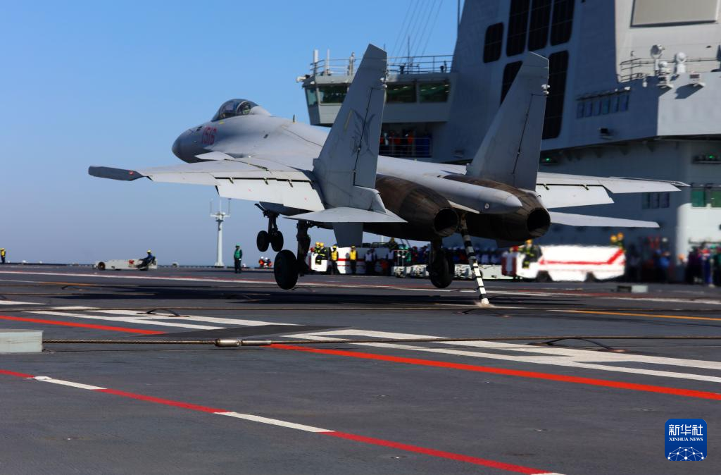 歼-15T舰载战斗机在福建舰阻拦着舰(资料照片)。新华社发(李唐 摄)