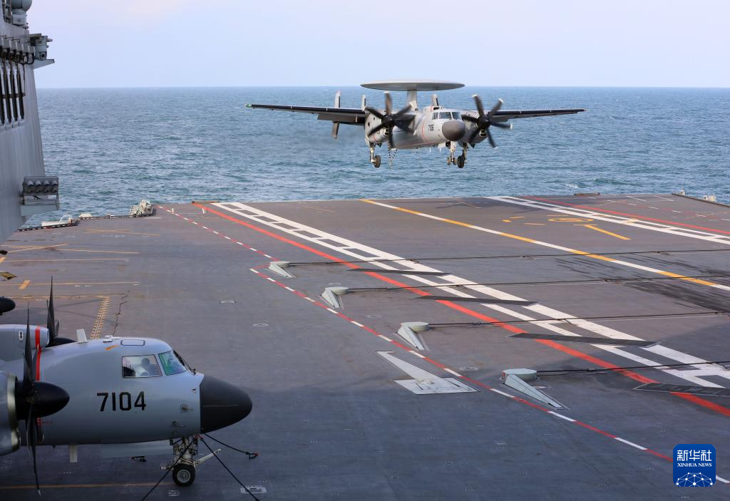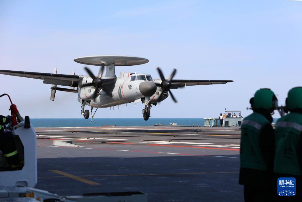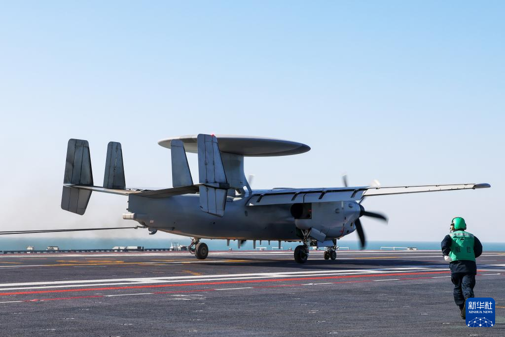 空警-600舰载预警机在福建舰阻拦着舰(资料照片)。新华社发(李唐 摄)