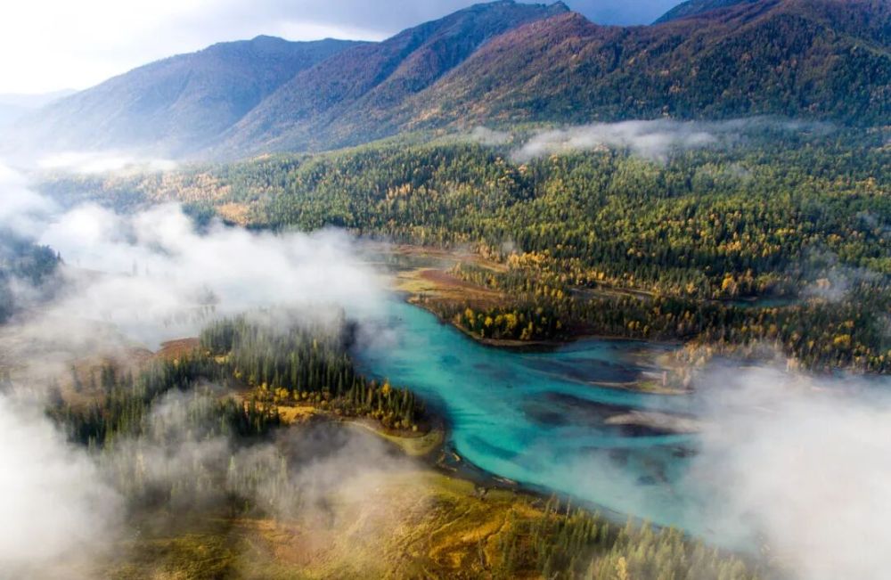 无人机拍摄的喀纳斯景区风光。新华社记者 王菲 摄