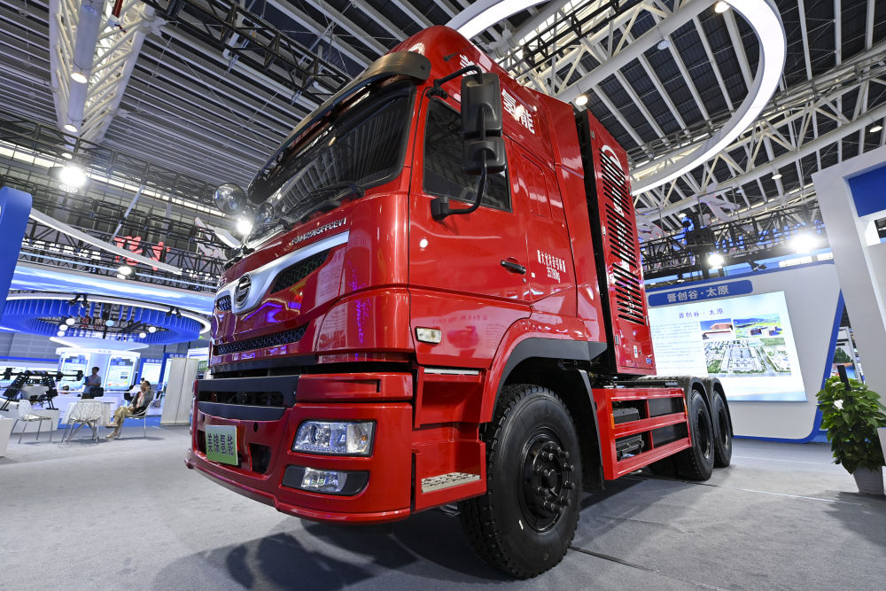 这是2024年9月11日在2024中国(太原)国际能源产业博览会上拍摄的美锦氢能重卡。新华社记者 杨晨光 摄